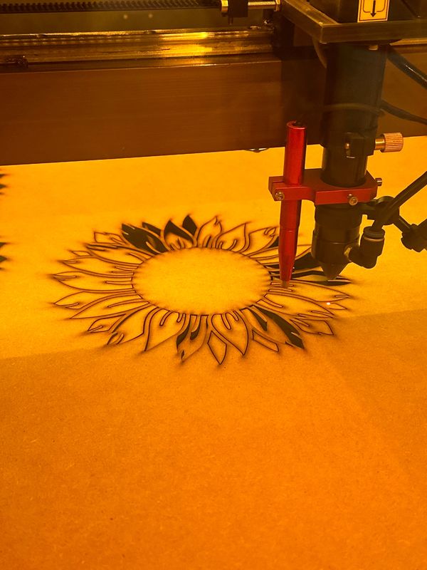 Laser cutters work using a high-powered laser that is directed towards the choice material to either cut or score. Determined by a computer-generated design, the laser machine follows paths and directions regarding the location and power level, causing the material to be either cut or engraved. The creation of the design allows for the customer to visually see their desired design. This design is then imported to the machine for the cutting and engraving of the selected material. Once the cutting and engraving is completed, the material and product is finished using different stains, paints, and finishes.